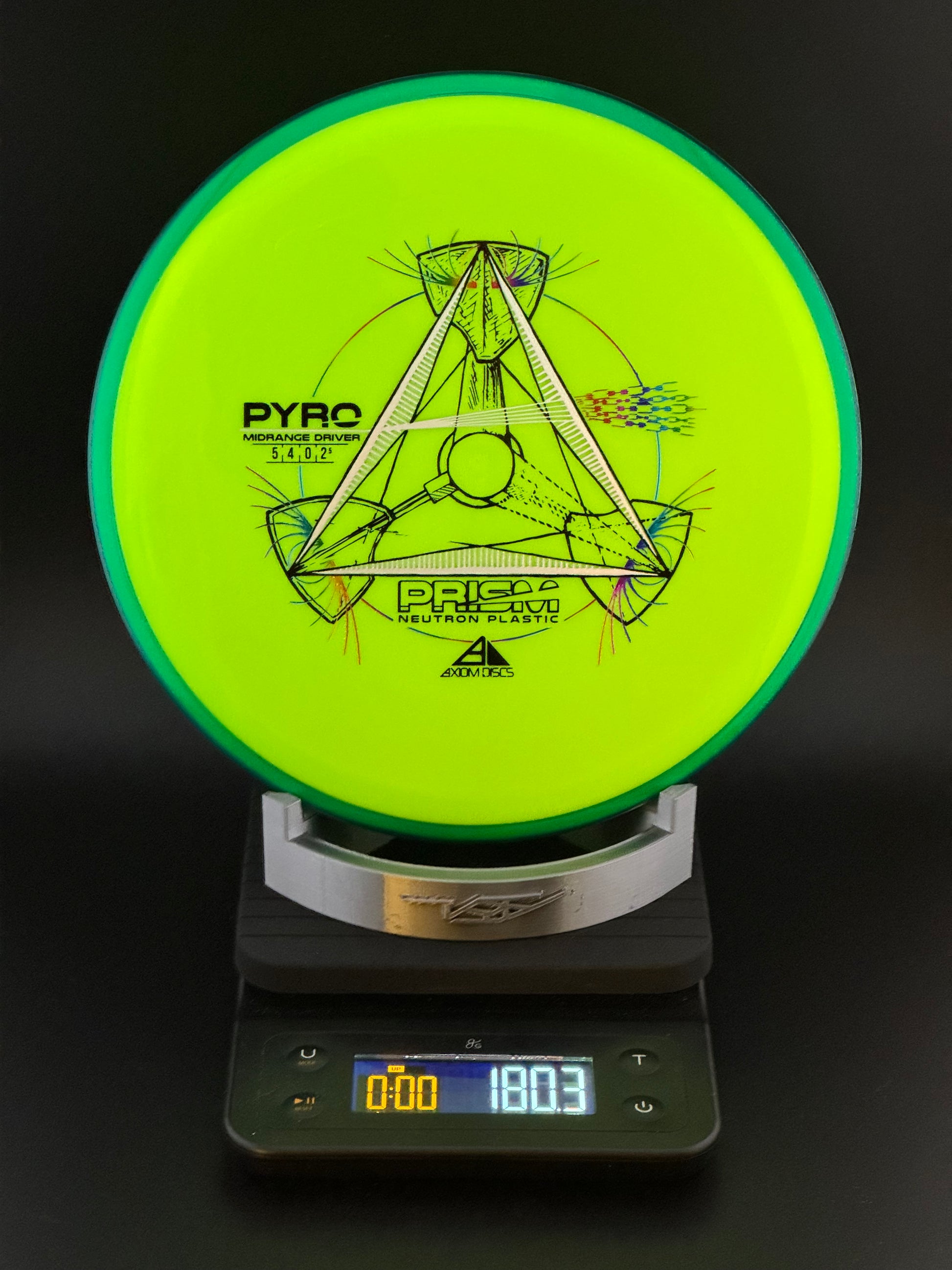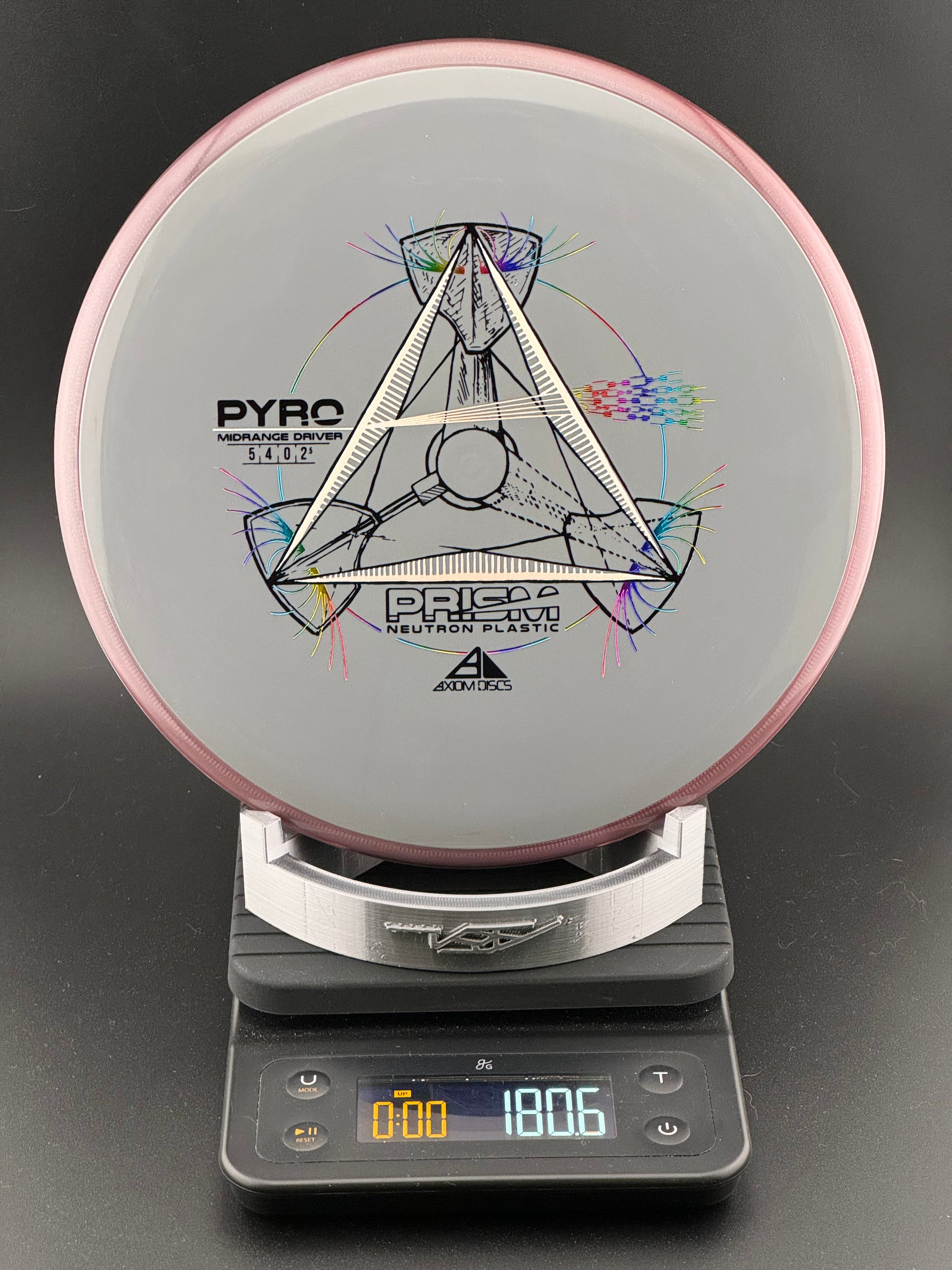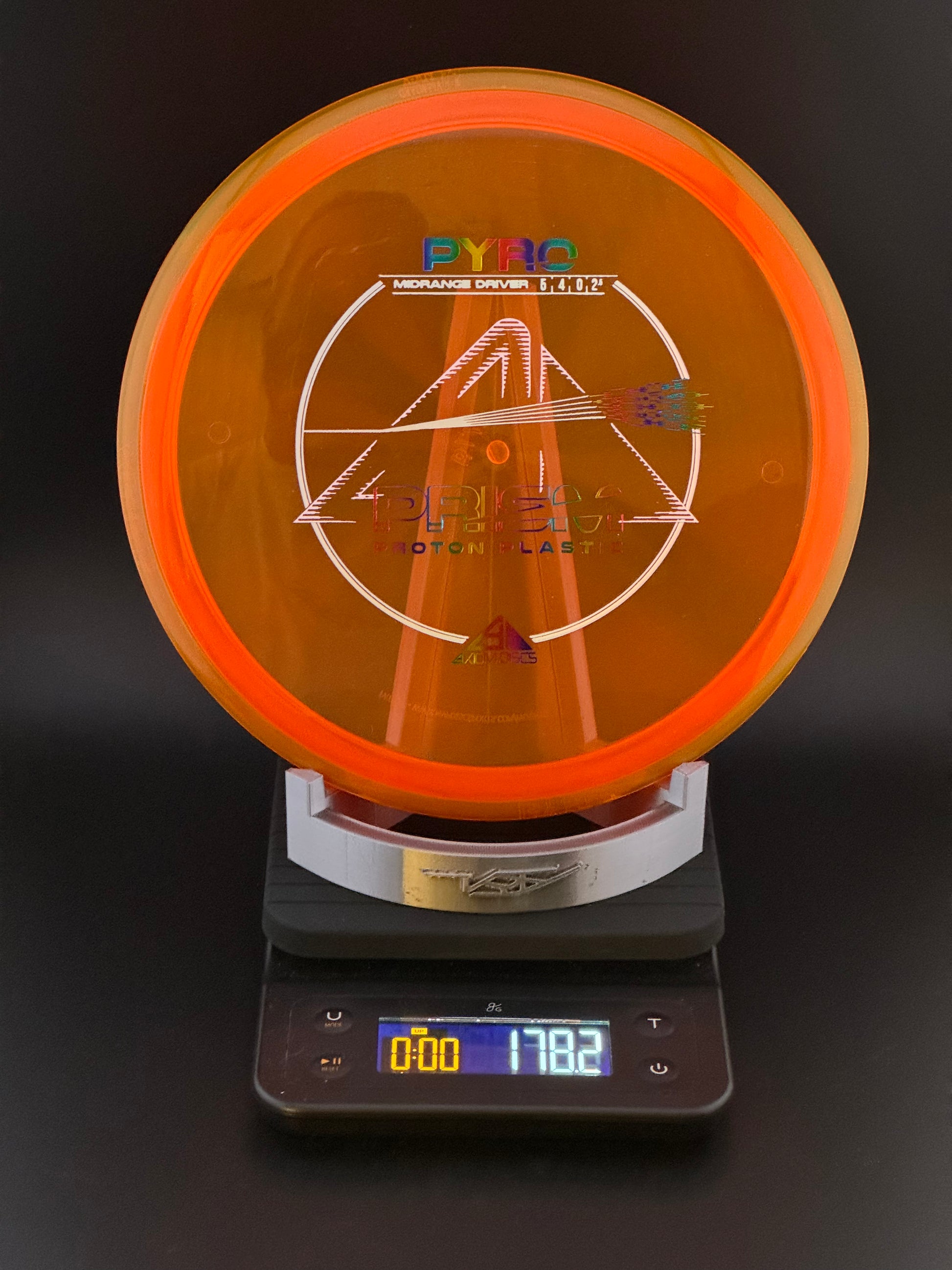 The Prism Pyro is debuting with a stock triple-foil stamp, that in combination with a Proton core and Prism rim produces a stunning dual-toned translucent disc. The Prism Proton Pyro was designed as Axiom’s first overstable Midrange with more glide than the MVP Deflector and a commanding stable finish. The Pyro has enough stability for consistent flights in strong winds and powerful throws without losing its line and turning off target.