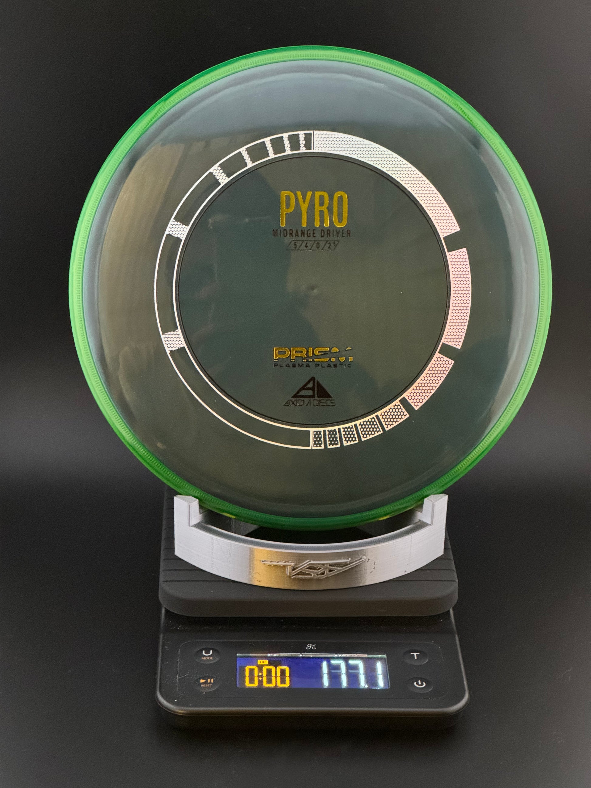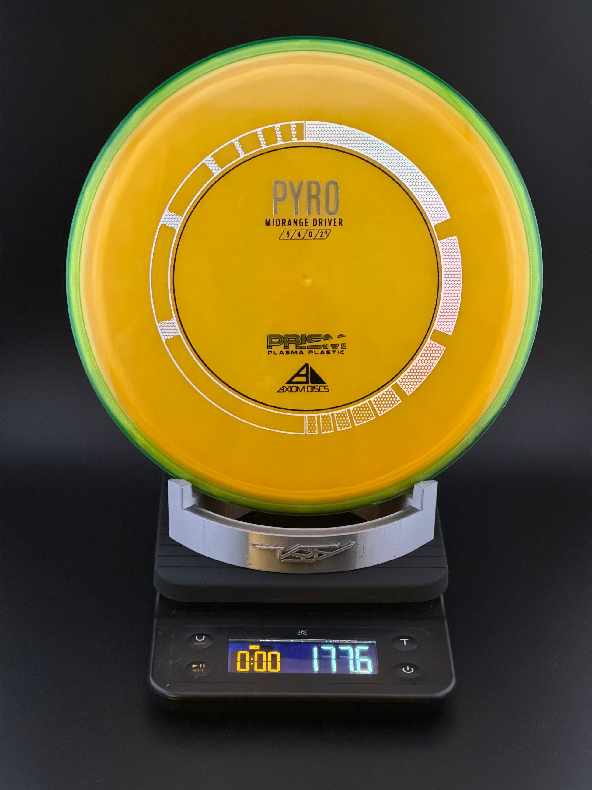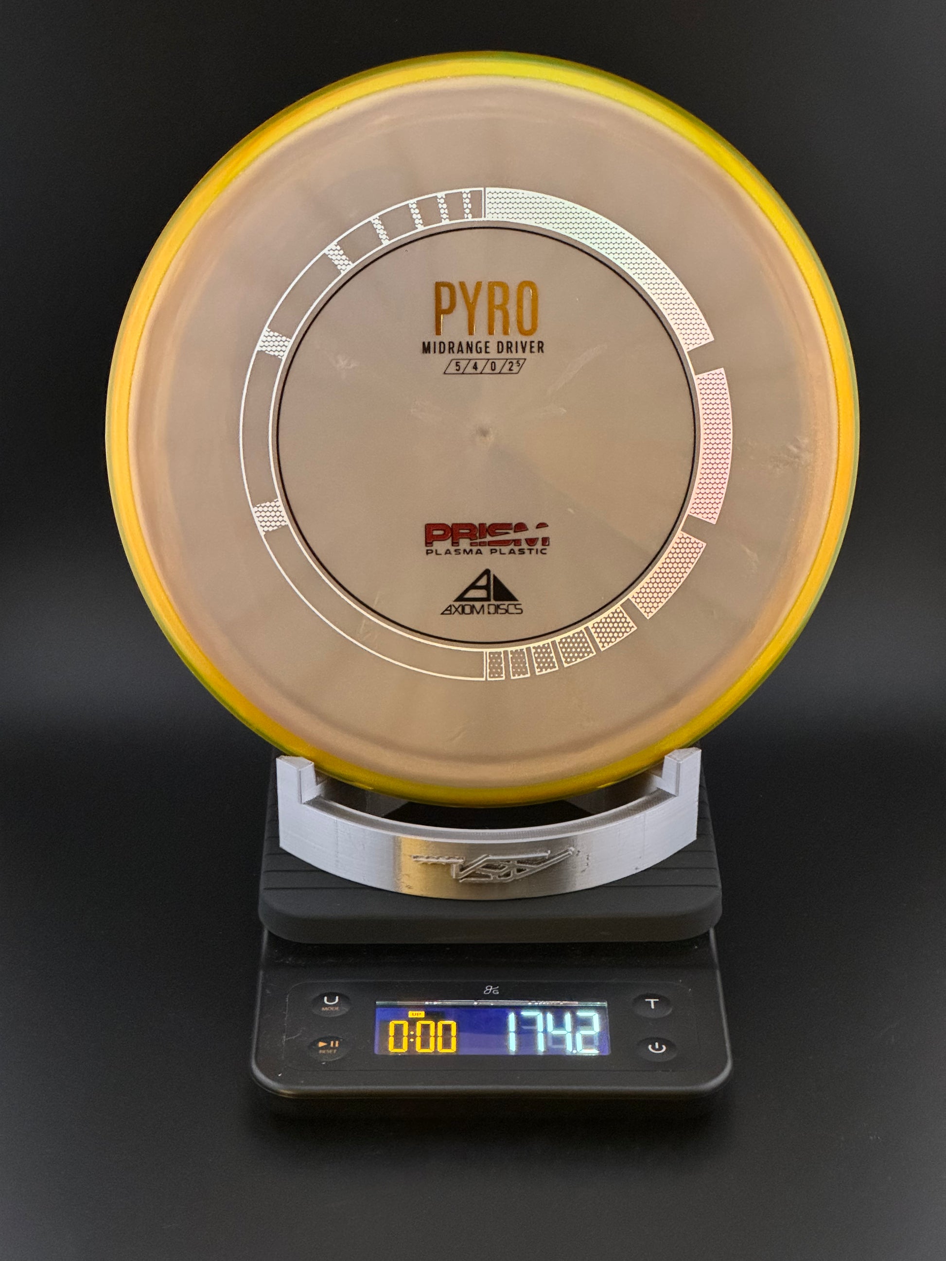The Prism Pyro is debuting with a stock triple-foil stamp, that in combination with a Proton core and Prism rim produces a stunning dual-toned translucent disc. The Prism Proton Pyro was designed as Axiom’s first overstable Midrange with more glide than the MVP Deflector and a commanding stable finish. The Pyro has enough stability for consistent flights in strong winds and powerful throws without losing its line and turning off target.